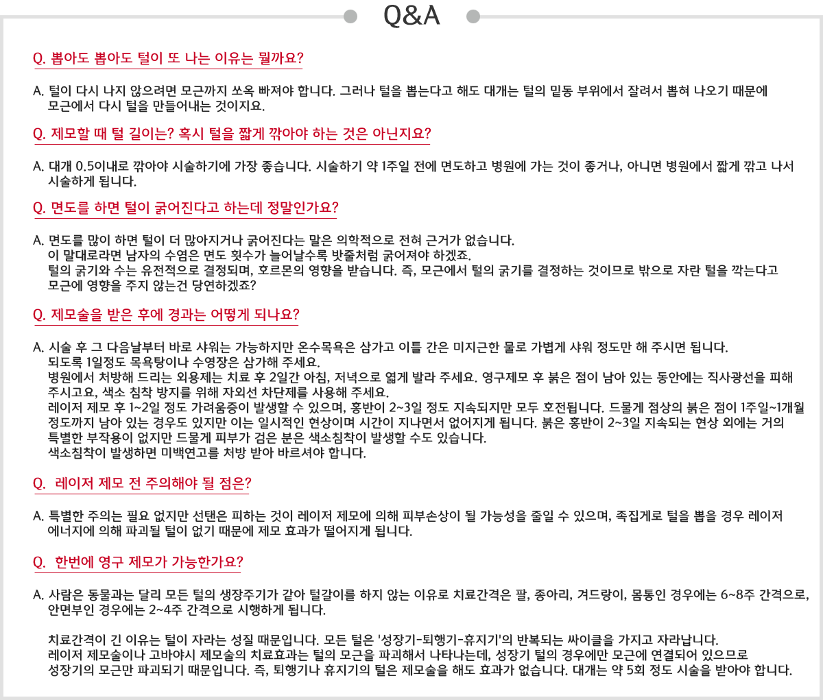 6. 다음 치료 때까지 털을 뽑거나 왁싱은 피해줘야 하며, 면도는 가능합니다.